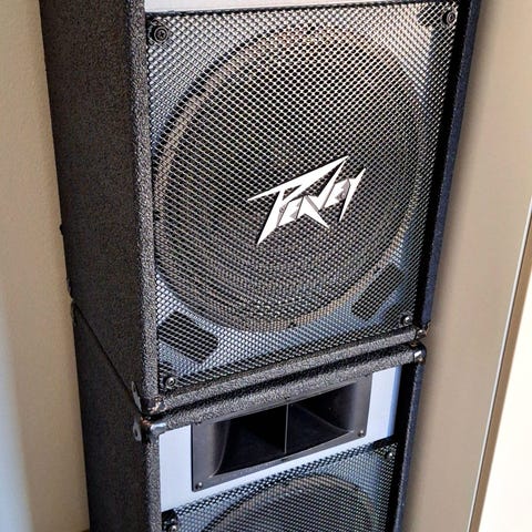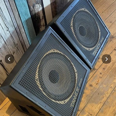 Kuvan kaiuttimet kunnostettuna jälleen iskuunsa kaltoinkohdeltujen baarivuosien jälkeen. Bassot Carvin PS15C Eminencen valmistama. Toinen elementti täysin uusi. Keskiääniksi vaihdettu image stageline SP-6, Diskantit Celestion HF50. Jakosuodattimet paranneltu ja rakennettu uudestaan ja lisätty speakon liitin alkuperäisten jack liittimientilalle. Kotelot ei näteimmät toisen pohjaan ruuvattu tukivaneri edellisten omistajien toimesta. Pohjassa Pole kannakkeet. Pelkkä bassoelementti käytetty ebayssä 150€ / kpl. Kuvan pyöräjalustat ei kuulu mukaan.