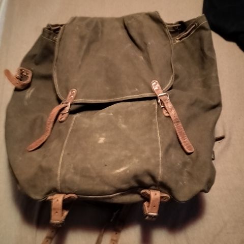 Tilava ja hyväkuntoinen satulareppu. Mahdollisesti puolustuvoimien malli.