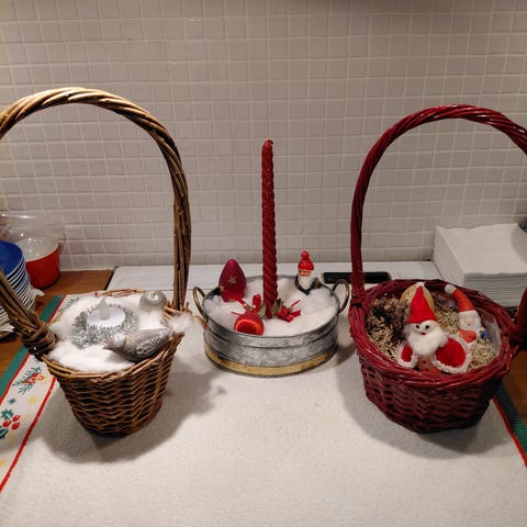 Vaikka jouluisiin asetelmiin 4 kpl erillaisia punaisia koreja. Yht. 10e.