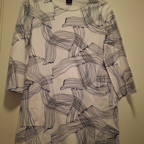 Nanson collegepaita. Hihansuissa on kaksinkertainen kaitale, jonka yläpuolelle poimuttuu 3/4 pituiset hihat. Materiaali on miellyttävän tuntuista, paksumpaa interlock-neulosta.