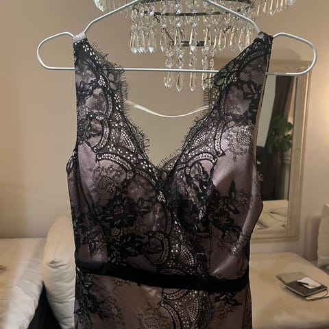 Myydän JJ's houselta tilattu kaunis viininpunainen iltapuku. Omilla mitoilla tilattu, mutta vastaa suunnilleen kokoa S. Pitkä lattiaan asti ulottuva helma jossa halkio. Suojapussi tulee mukaan ja hakiessa myös henkari. Uusi, laput vielä kiinni.