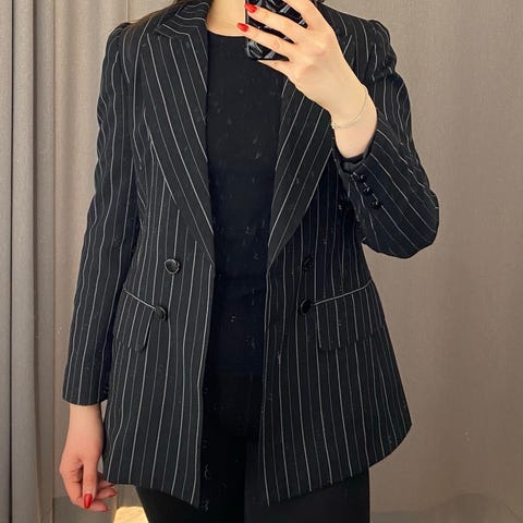 Hugo Boss musta naisten bleiseri koko XS. Takki on valmistettu laadukkaasta materiaalista, jossa 98% villaa ja 2% elastaania. Takissa on kaksi nappia ja klassinen leikkaus. Erinomaisessa kunnossa.