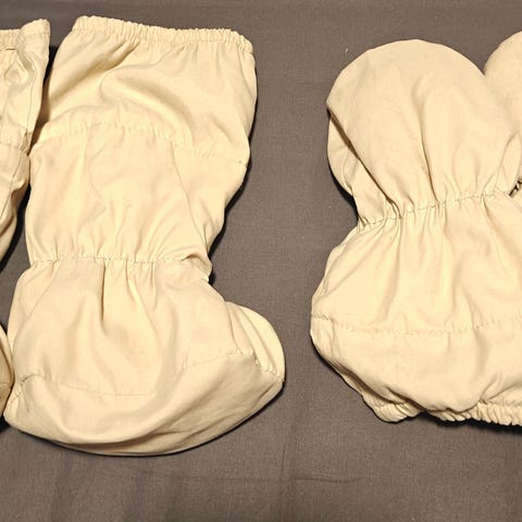 Äitiyspakkauksen lakki, kintaat ja tossut. Hyväkuntoiset.