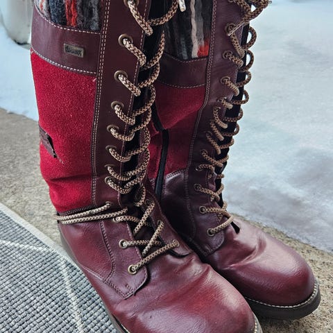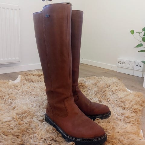 Kuvan saappaat myytävänä. Kaksi kertaa ollut jalassa. Pohjan sisämitta noin 25-26cm, varsi ylhäältä max noin 52-54cm. Teddykarva sisävuorena.