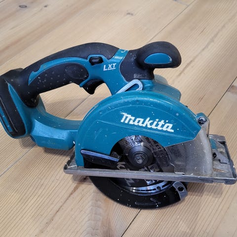 Makitan akkukäsisirkkeli, mukaan saa käyttämättömän terän puulle sekä vähän käytetyn terän kivilevylle. 6ah akku mukaan, ilman akkua pelkkä runko 170€, akku yksinään 50€.