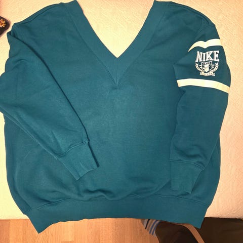 Erittäin hyvä kuntoiset collegehousut. Ei käytön jälkiä. Housuissa siivutaskut ja kiristysnyöri vyötäröllä. Niken logo vasemmassa lahkeessa. Sisäsauman pituus 74 cm. Niken sivuilla värinä oli Geode Tail eli sinivihreä. Väri siis ei ole täysin tumman vihreä vaan vähän mukana sinistä. Sen verran vähän käytetty, että pesty vain kerran sekin nyt myyntiä varten. Katso myös samaa sarjaa myynnissä oleva collegepaita.