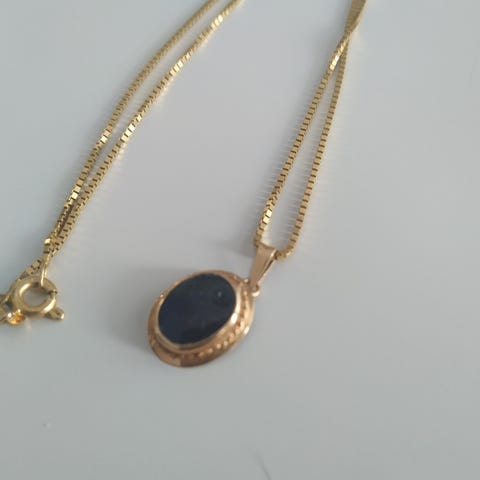 Nimileima EP= Keravan kultaseppä, vuosileima A8= 1978, pitoisuusleimasta vaikea saada kuvaa, numerot katkeaa. Mutta vahva veikkaus, että on 585. Paino n. 7-8 gr, pituus 44 cm.