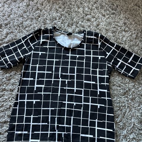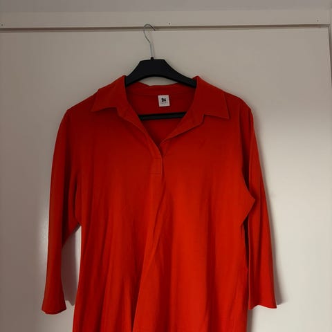 Punasävyinen paita jossa sivuilla taskut, takahelma hieman pidempi.