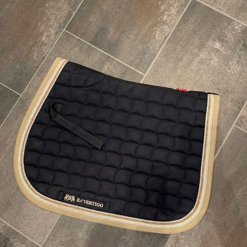 Myydään B Vertigon tummanharmaa este/yleishuopa, jossa lilat ja hopeat strassinyörit, navy kanttaus. Koko cob.