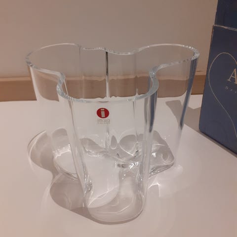 Lasinen Aalto-maljakko, korkeus 3 cm ja halkaisija noin 10 cm. Hyvä kunto.