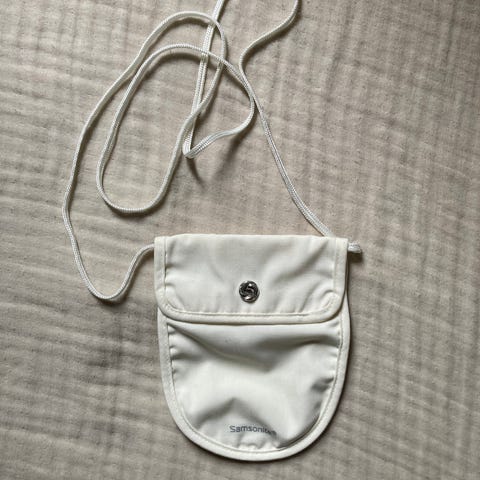 Samsonite -merkkinen reilun kokoinen pukupussi. Suurin korkeus n. 145 cm täyspitkänä ja 110 cm lyhyemmäksi taitettuna, näppärästi neppareilla. Leveys n. 55 cm. Pussin vakiovarusteena on tukeva metalli henkari, jossa välitanko esim housuille ym.