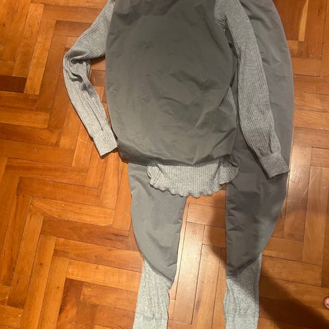 Lähes käyttämätön, lämmin merinovillainen välikerros esim. lumilautailijalle tai vapaalaskijalle asiaankuuluvin vetoketjuavauksin. Väri oliivinvihreä.