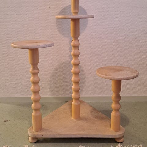 Metallista sorvattu kukkataso tai voi pistää vaikka kaijuttimen tai vaikka keksiä itse jotain. Painava, umpirautaa. Olen itse tehnyt. Päällä on kumimatto jotta purkit pysyy paikoillaan. Jokaisessa osassa kierteet joten saa 3 osaan. Korkeus 48x tason halkaisija on kuvassa. Ei kaadu ihan helposti. Hinta 50€. Nouto. Maksu käteisellä
