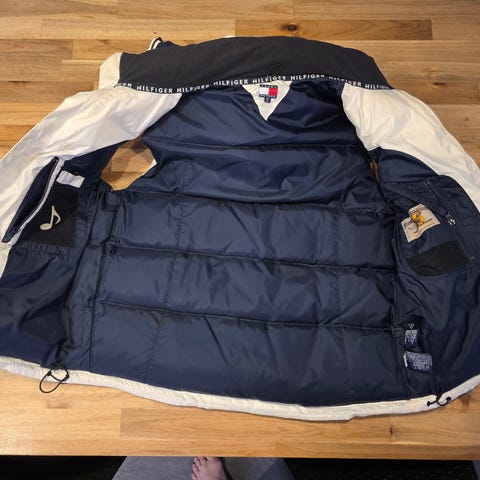 Myyntiin lähes uuden veroinen Tommy hilfiger miesten untuvaliivi, irroitettavalla hupulla,paksu lämmin liivi.