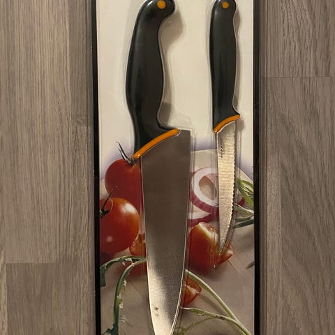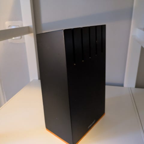 Myydään vanhan malliston Fiskars functional form 5-osainen veitsitukki. Kunto ok, veitset vaativat teroitusta. Leipäveitsessä pieni ruostunut kohta, näkyy kuvassa.