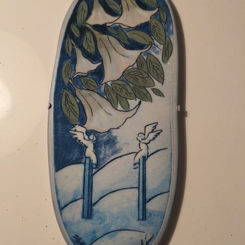Arabia Heljä Liukko-Sundström seinälaatta ”Kukat kuiskivat”. 25,5cm x 10cm. Hyväkuntoinen.