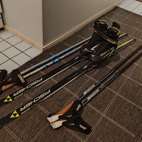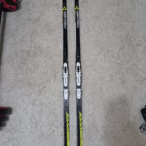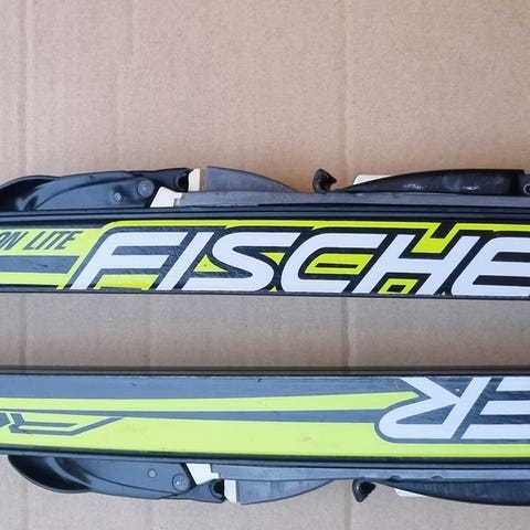 Fischer RCR Skate nuorten luistelusuksi, pituus 152 cm. Suksissa Salomon SNS siteet. Mukana Start sauvat 130 cm