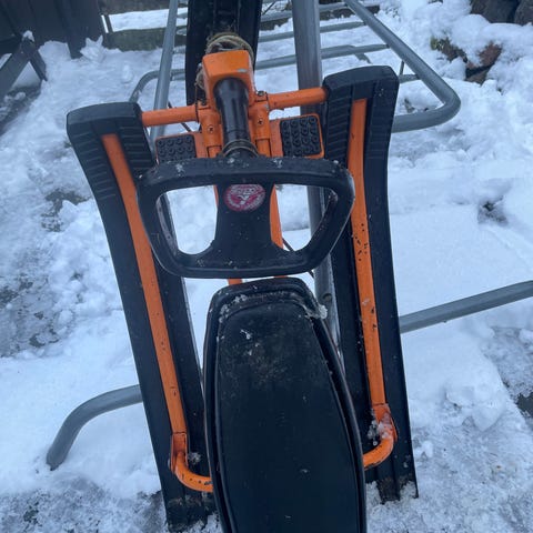 Hyväkuntoinen ja vähän käytetty rattikelkka jarruilla.
