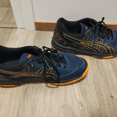 Sininen asics ja puman kengät ovat kokoa 39