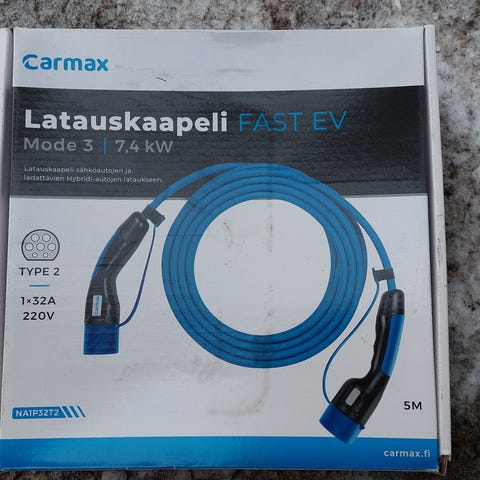 Carmax FAST EV Latauskaapeli, Mode 3, 22 kW, 400 V, 3-32 A, Type 2 -liitin, pituus 5 metriä, sininen väri. Sopii sähköautoihin, joissa on Type 2 -liitäntä.