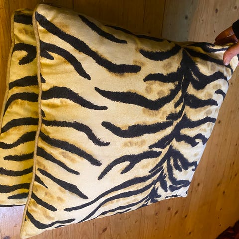 Myynnissä kaksi ihanaa tyynyä, joissa lämminruskeat, luonnonläheiset kuviot. Sopivat täydellisesti sohvalle, nojatuoliin tai vaikka lattiatyynyiksi. Erittäin pehmeät ja hyväkuntoiset — valmiit suoraan käyttöön.