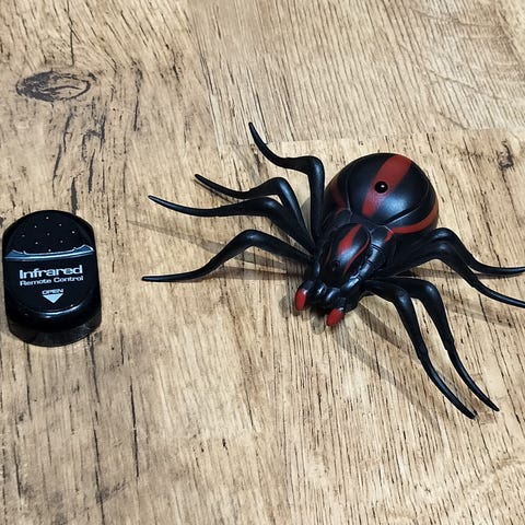 Kauko-ohjattava hämähäkki, jossa ohjaimissa tarve 2:lle AA-patterille. Ampuu pehmeitä kiekkoja, osa kiekoista käyttämättömiä. Lentää muutaman metrin.