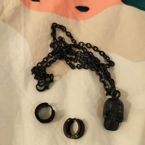 Virosta ostetut nahkapunontaa olevat korut. Postikulut lisäksi.