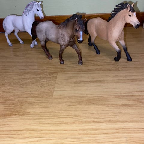 Myydään iso schleich setti. Mukana tulee 14 hevosta 3 kolme ukkoa ja muuta pientä tavaraa. Tinkivaraa on postitus käy.