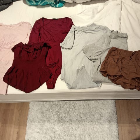 Merkkeinä mm. Nanso, Vila, Vero Moda, Zara, Lindex jne. Vaatteet ostettu uutena ja osaa vain paristi pidetty.