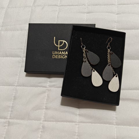 Uhana pisarakorvakorut musta-harmaa-valkoinen, lyhyt
