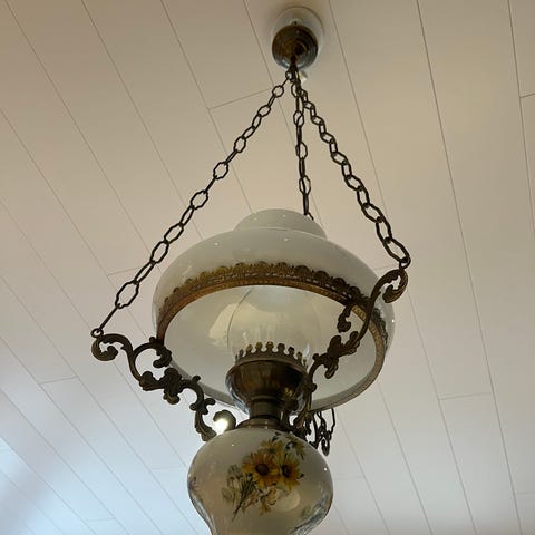 Vintage riippuvalaisin helmiäiskoristeilla, kunto hyvä, ei kulumia