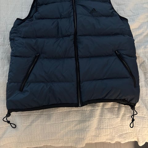 Adidas miesten liivi, koko L, sininen väri. Liivi on valmistettu kevyestä materiaalista, jossa on vetoketjukiinnitys ja sivutaskut. Sopii ulkokäyttöön ja kerrospukeutumiseen.