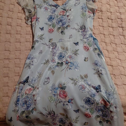 Myydään kaunis sinivalkoinen mekko, käytin vain kerran, itsenäisyysjuhlaan.