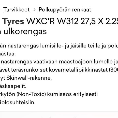 Otsikon mukaiset polkupyörän talvirenkaat yhteensä 50€. Renkaat ovat käyttämättömät. Vain nouto!