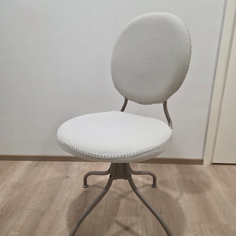 IKEA tuoli pyöreällä selkänojalla ja vaalealla verhoilulla
