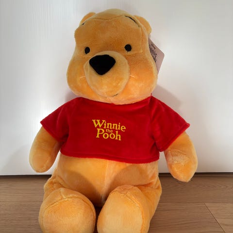 Nalle Puh pehmolelu, korkeus pääselkä mitta 25cm. Hyvässä kunnossa.