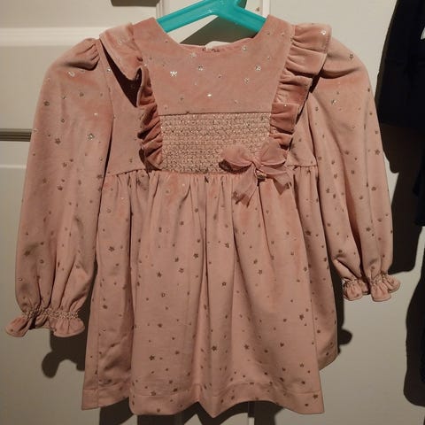 Muutaman kerran päällä käynyt juhlamekko pikkuiselle. Kotitaloidessamme ei ole eläimiä, hajusteita tai tupakointia.