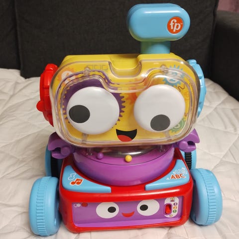 Robotti, joka laulaa, juttelee ja liikkuu. Kolme eri tasoa lapsen taitojen mukaan. Siistikuntoinen ja toimii moitteetta.