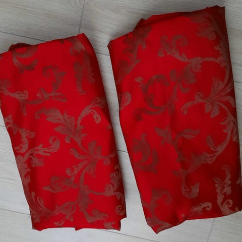 Kuvien verhokapat. Kappojen leveys 159-160cm. Toisen kapan yläreunassa rispautumaa - katso kuva. Vaatinevat pesua.