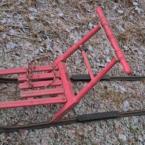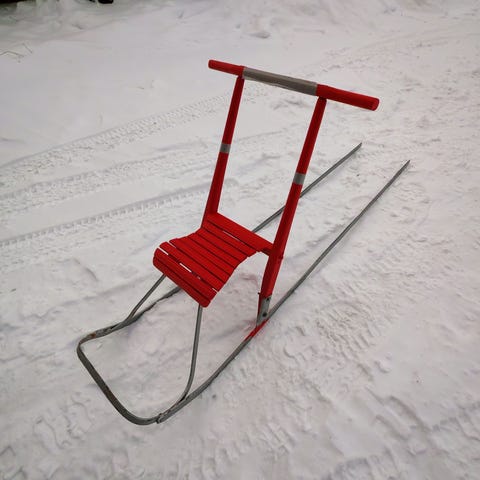 Lasten vanha sininen Esla potkuri, maalattu uudelleen.