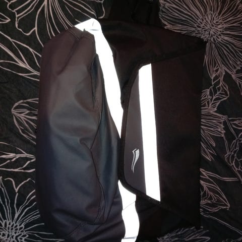 Paksua nylonkangasta tukevalla vetoketjulla ja kantohihnoilla.