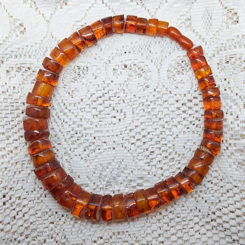 Meripihkakaulakoru, jonka pituus on n. 66 cm. Paino 75g.