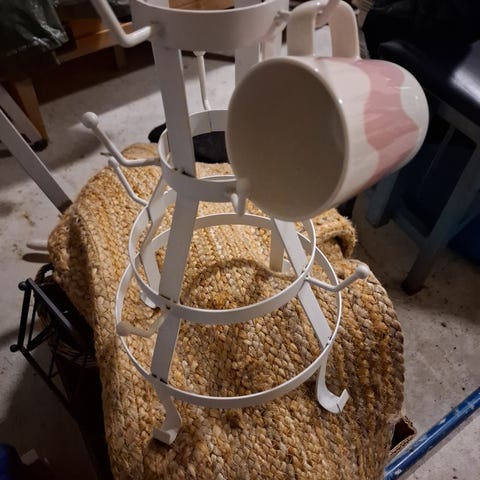7 koukkua. Voi ripustaa esim mukeja tms. Tyyliin kuluvaa kulumaa. Jostakin sisustusliikkeestä aikoinaan ostettu. Tarjoa