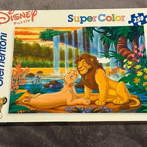 Erittäin hyvässä kunnossa oleva 99 palan lion king palapeli. Laatikossa kulmissa minimaalista kulumaa, muilta osin uuden veroinen.
