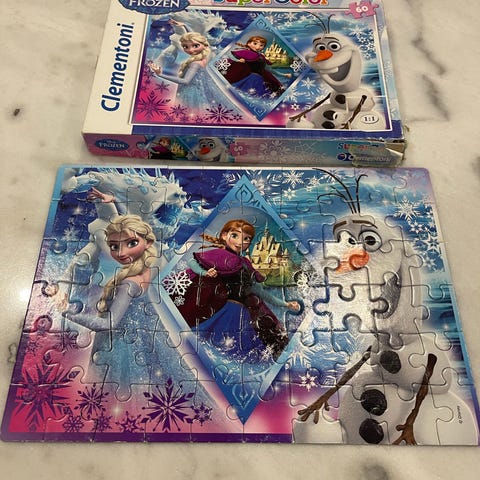 Clementoni Frozen palapeli, jossa on 30 palaa. Laatikko kulunut, mutta muuten hyvässä ja siistissä kunnossa.