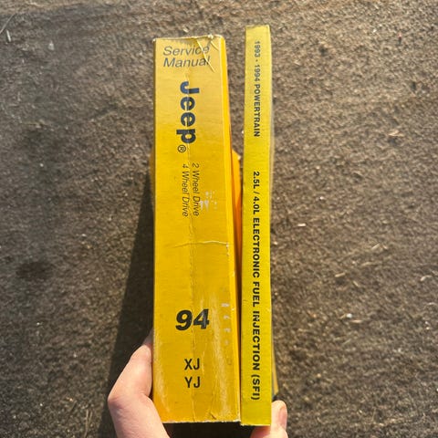 Jeep Grand Cherokee ZJ 1994 tehtaan alkuperäinen korjaamokäsikirja, lisäksi vaihteiston ja korin diagnostiikkakirjat.