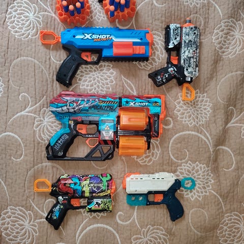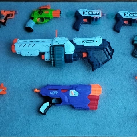 Kuvan mukaiset Nerf lelu aseet.