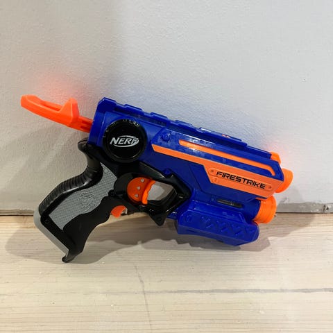 N strike Elite stryfe ,pattereilla toimiva mutta en tiedä toimiiko ammuskotelo puuttuu 2€.