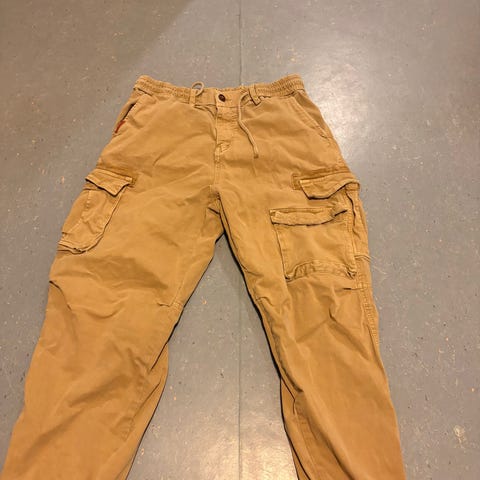 Hyvässä kunnossa olevat beiget miesten cargo housut, kokoa S. Merkki Vailent.