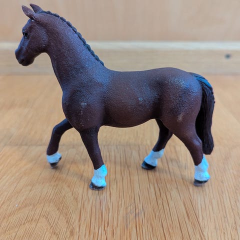 Schleich hevonen lasten leluhahmo, valmistettu kestävästä materiaalista. Väri valkoinen ja ruskea. Soveltuu lasten leikkeihin ja keräilyyn.